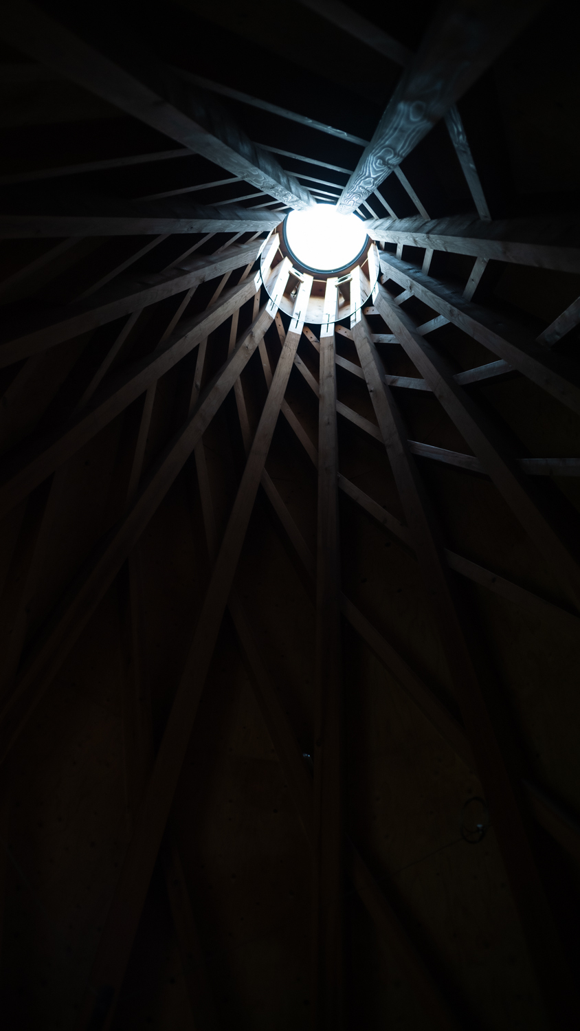 斜面に生えている木を丸々使うことにより、それぞれの支柱は継ぎ目なく一本の木でできているそう。