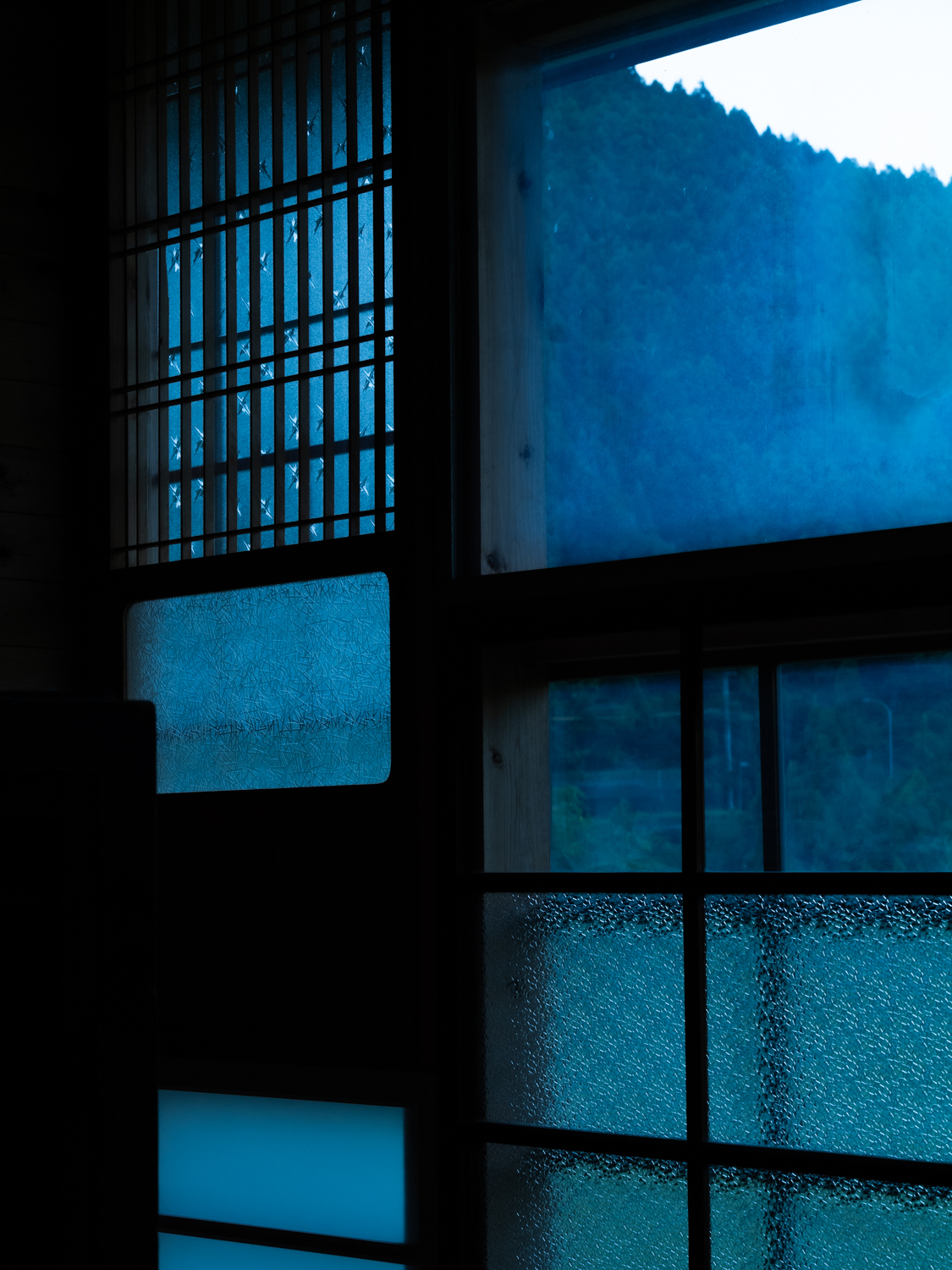 磨りガラスの様々なパターンは、内からも外から見ても飽きない。