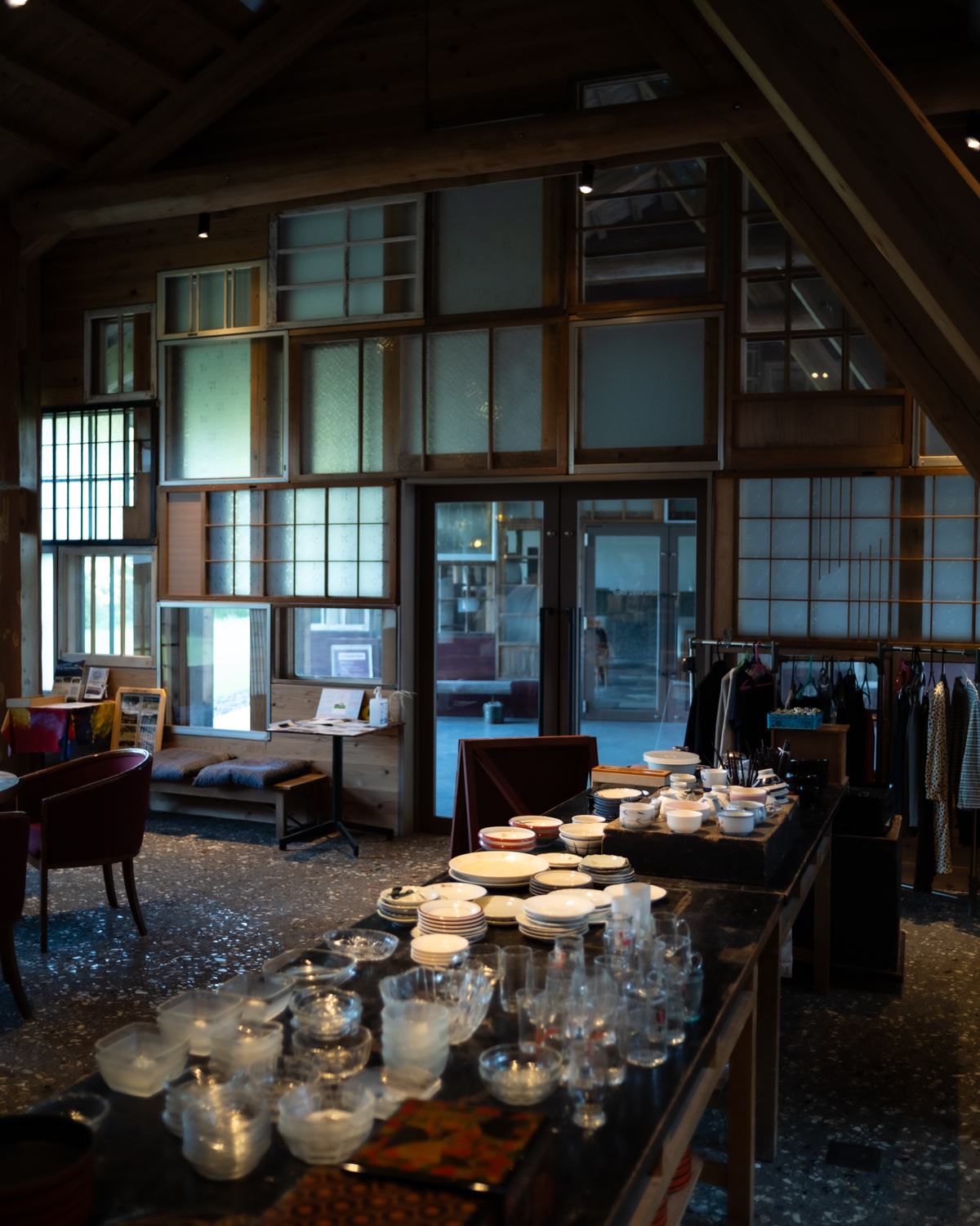 藍染した板版やASSEMBLEが地域の学生と行なったワークショップで制作したオブジェクトが置かれており、ここでも地域性を意識したデザインとストーリーがありました。