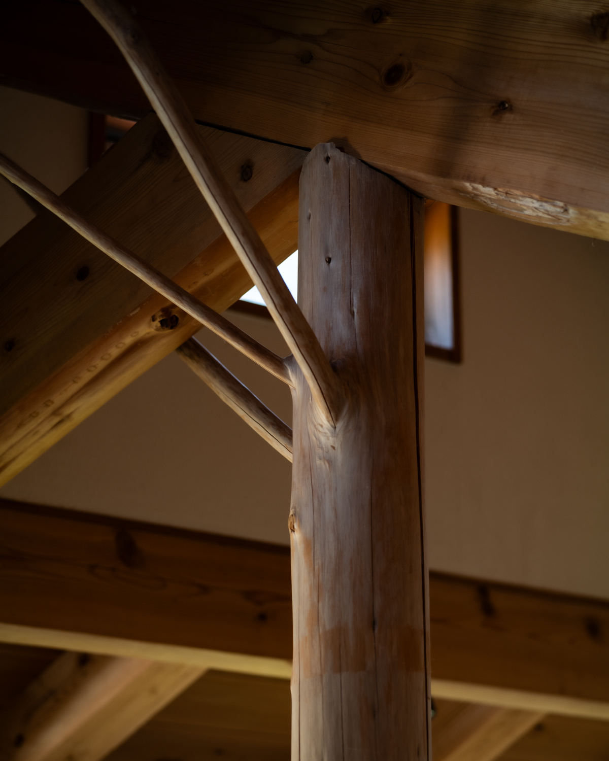 斜面に生えている木を丸々使うことにより、それぞれの支柱は継ぎ目なく一本の木でできているそう。